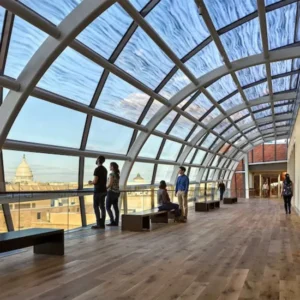 Rooftop Garden and Scenic Views: On the sixth floor, guests can enjoy a rooftop garden showcasing plants mentioned in the Bible, alongside panoramic views of the National Mall and U.S. Capitol. This tranquil space provides a reflective environment amidst the bustling city, blending natural beauty with historical context.