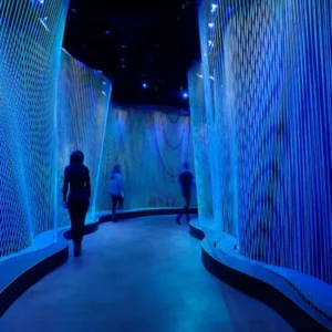 Stunning Architectural Features: The museum’s striking entrance boasts 40-foot tall bronze doors, intricately decorated with stained glass art depicting the creation story from Genesis. Inside, the grand lobby features a remarkable 140-foot LED ceiling that cycles through captivating visuals and messages. These architectural highlights set the tone for an immersive visit blending art, history, and storytelling.